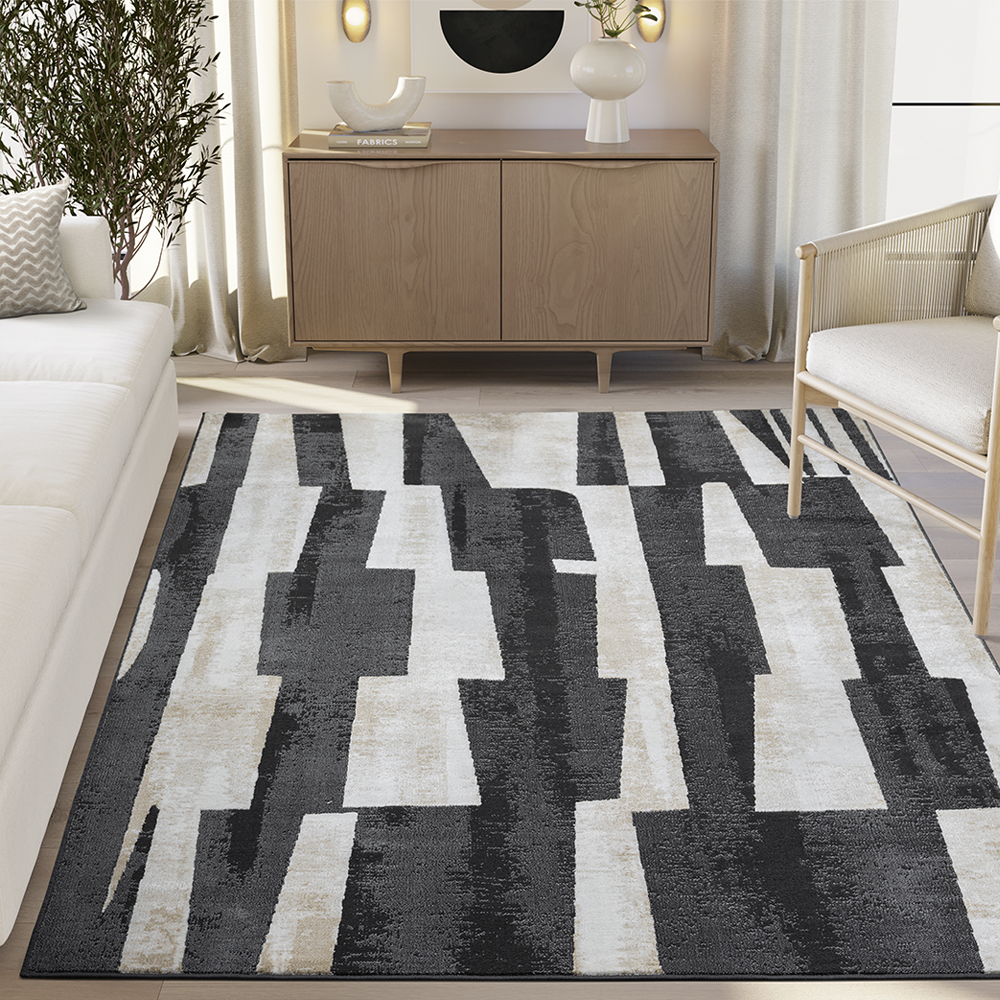 Burke Abstract Striped Black Rug