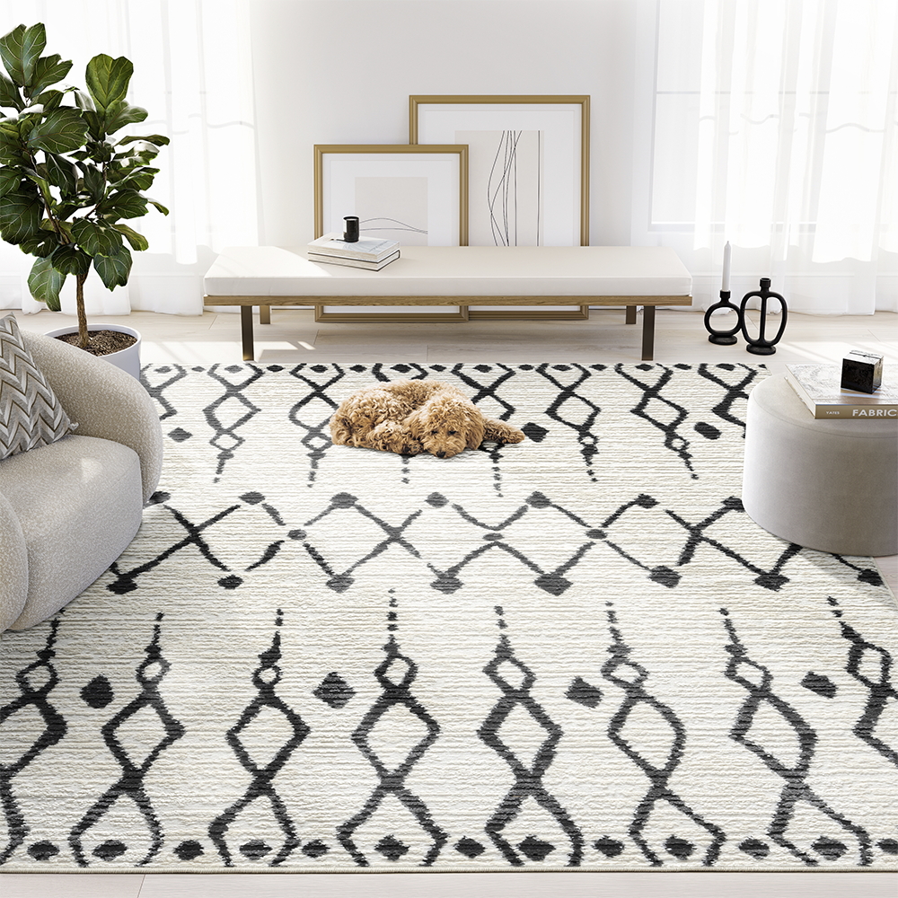 Plush Deco Checkered Washable Cream Rug