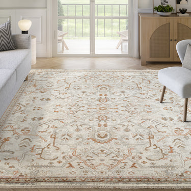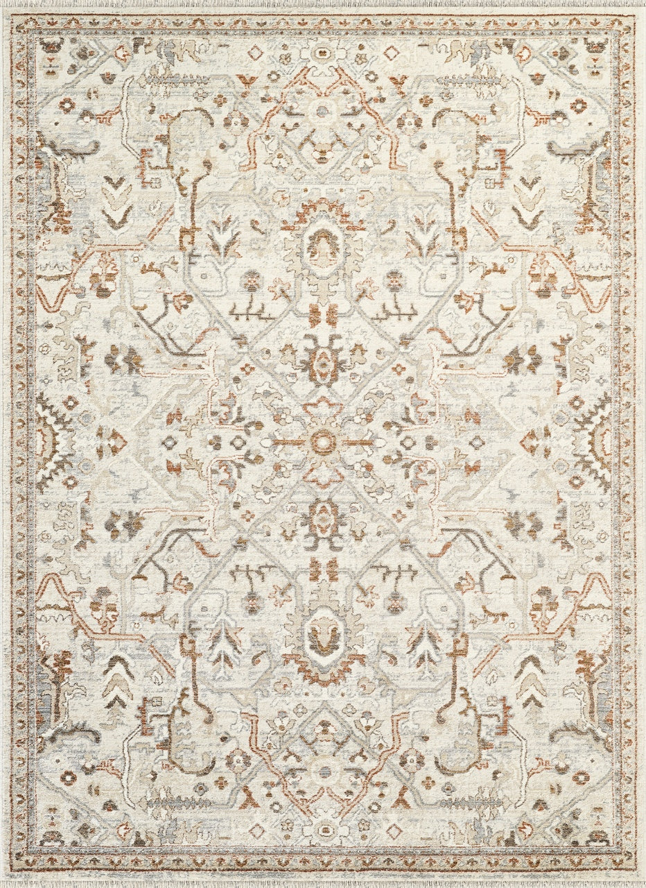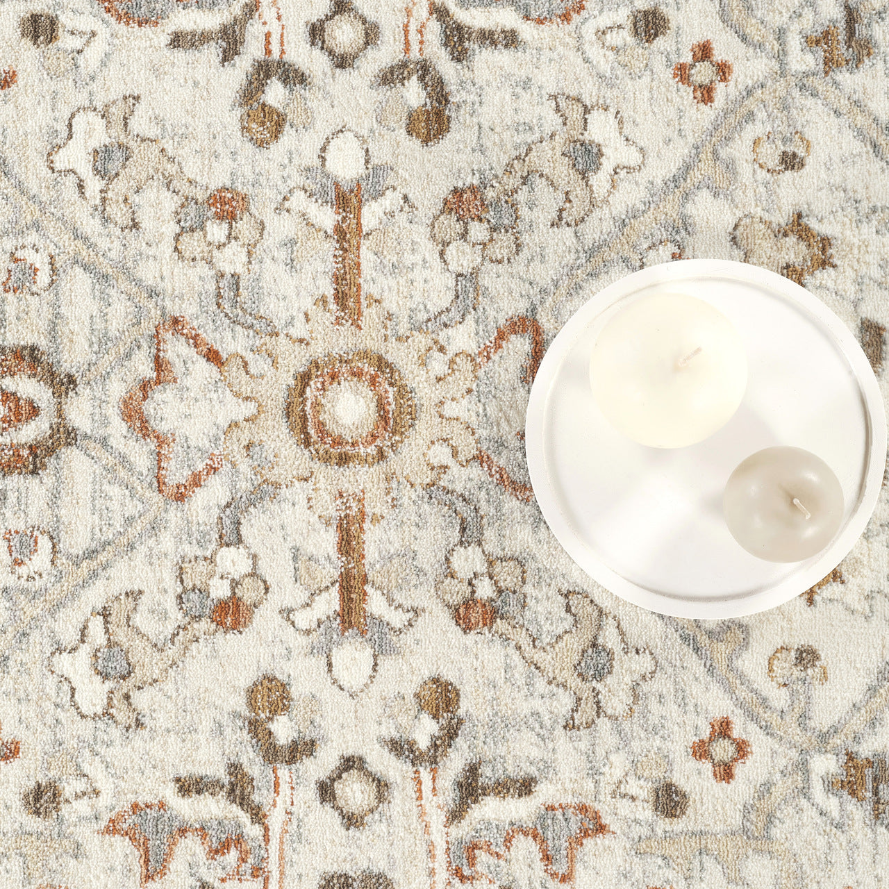 Add warmth and timeless style to your home with this beautifully detailed area rug. Designed with a traditional tribal medallion at its center, the pattern is enriched with layered geometric motifs and softly distressed textures. A versatile ivory backdrop is paired with earthy tones of rust, taupe, and grey, making it easy to complement both classic and modern interiors. Perfect for anchoring your living room, bedroom, or entryway with a sophisticated, lived-in look.