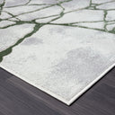 This contemporary area rug could be a slab of marble, a shattered piece of glass, or glaciers on the water. However you see it, this grey and green design blends perfectly with any color palette, and the subtle pop of green adds excitement without clashing. Add this versatile slice of life to your living space or work area.