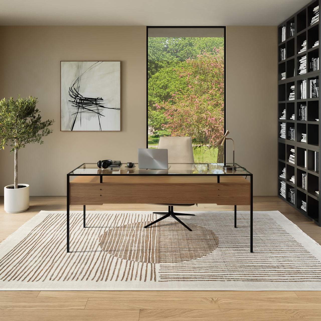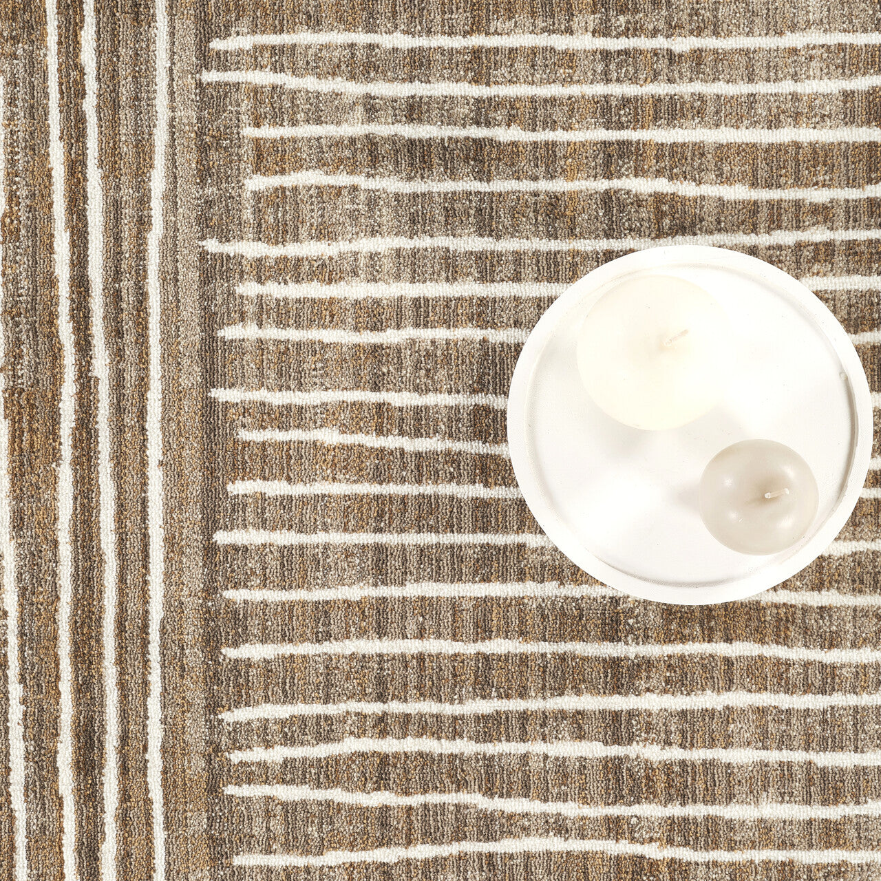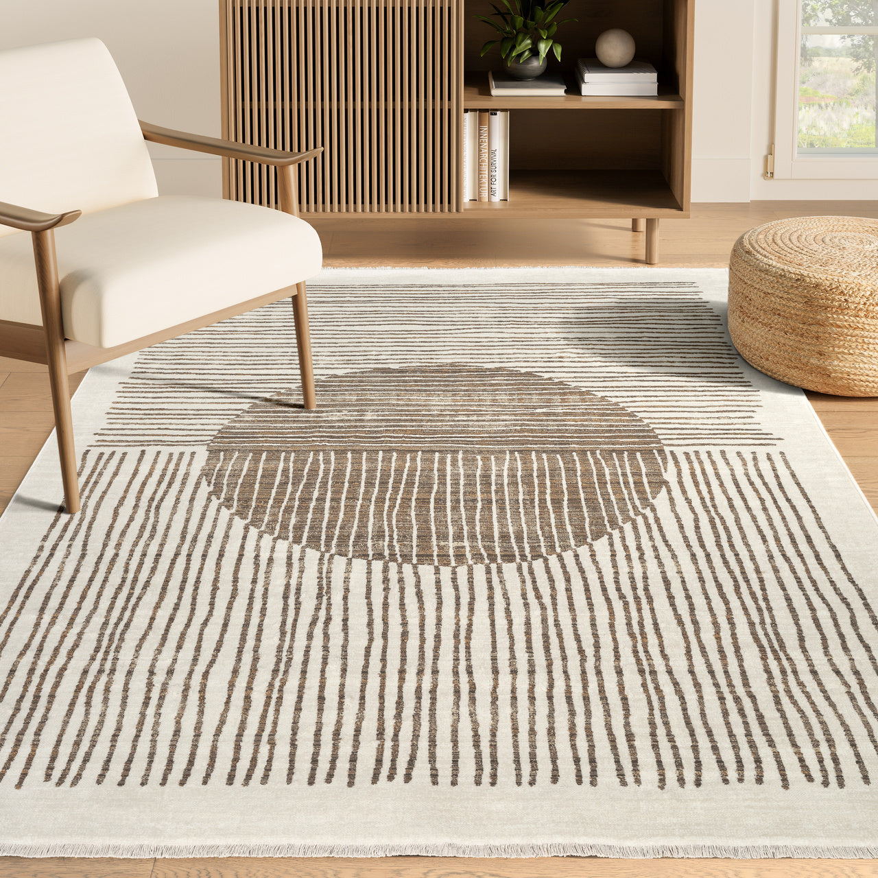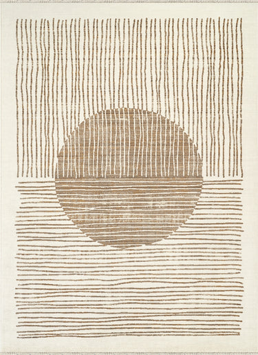 Inspired by natural forms and modern design, this area rug features a striking sun motif formed by organic vertical and horizontal lines. The ivory and warm brown tones create a soothing, earthy palette that adds calm and character to any room. Perfect for minimalist, bohemian, or Scandinavian interiors, this rug is ideal for living rooms, bedrooms, or creative spaces in need of an artistic touch.