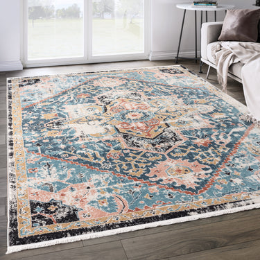 Azure Hexagon Medallion Blue Rug
