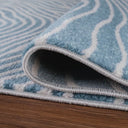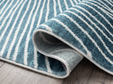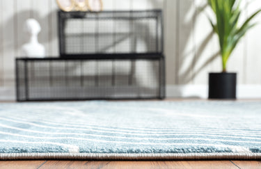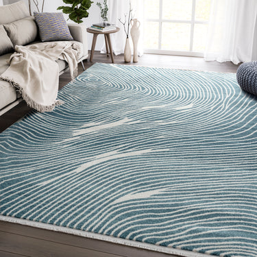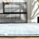 Bring effortless style and class to any space in your room with this stunning area rug. The watercolor-esque blue lines and symmetry create something completely unique and one-of-a-kind. This isn’t your average contemporary rug. With darker shades of blue and bright streaks of white, it’s like you’re waiting in the calm of a storm. With design as powerful as it is beautiful, this is an eye-catching statement piece you’ll love for years to come. Add this effortless, easy-care rug to your own interior design to discover just how big of an impact color can have in your space.