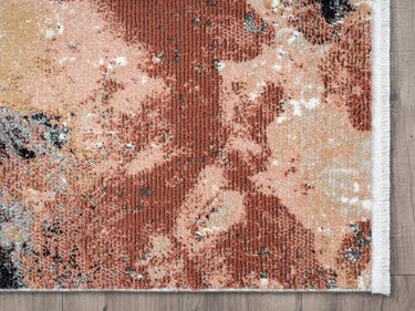 Take your interior design to museum-level elegance and style with this Azure Watercolor area rug. Showcasing a marbled, paint-spill motif with pops of warm burnt orange and navy blue over an ivory background, this is a work of art come to life. Like a swirl of ink or a rising storm cloud, this is an eye-catching statement piece you’ll love for years to come. The easy-care fabric ensures this area rug is simple to maintain, perfect for any high-traffic areas of your home. If you’re looking for something outside of the ordinary, this rug is the addition your home has been waiting for.