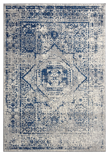 This Casa collection area rug blends the old with the new. Though the pendant design appears like it’s from another time, the modern blue and grey color scheme makes it a natural fit for any up-to-date, trendy interior style. Both intricate and antique-inspired, this is the perfect compromise for a space that’s one-of-a-kind. Blend the design of the old with the modern durability of this easy-care area rug to create something entirely unique. As though this rug had been in your family for years, it will become its own special heirloom in your design aesthetic.