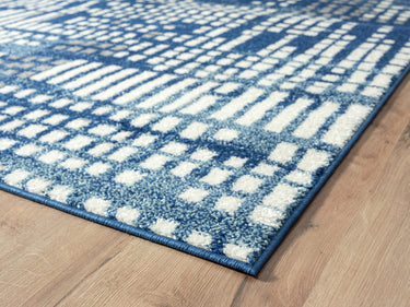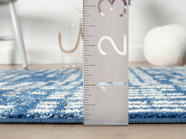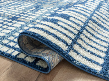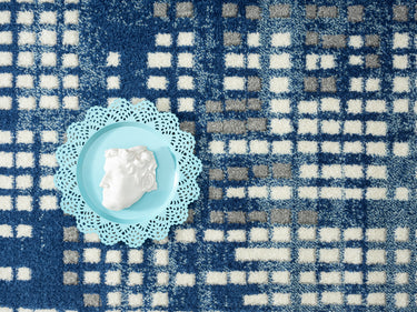 In the world of contemporary art, artists use shapes, texture, and color to paint an intricate tale. This Casa area rug is no exception, relying on this rich tradition of design to evoke feelings of warmth and comfort. The ivory backdrop is simple enough to suit any existing style, while the pops of navy stripes add depth and space to any room. Though seemingly placed randomly, the stripes create a visual of their own. The closer you look at this easy-care rug, the more it has to say. Add a touch of balance and serenity to any space with this Casa rug.