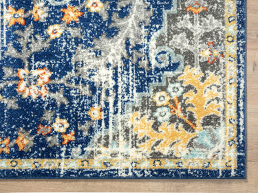Why not blend the old with the new to create something entirely unique? This Cruz area rug relies on centuries of rug-making tradition with a modern twist. The multicolor floral pattern is similar to rugs found in ancient homes, each more intricate than the next. The strong border outlines the shapes and designs, keeping them contained within the work of art. The pops of yellow, orange, navy, and blue create a multicolor piece that's easy to fit in any high-traffic area. Paired with an on-trend distressing, this is an easy-care area rug you'll want to cherish forever.