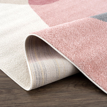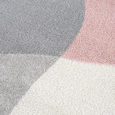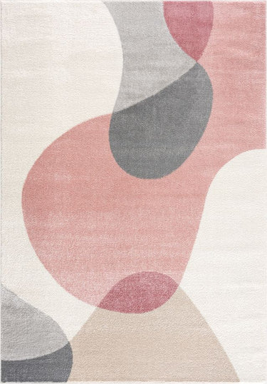 One of many mid century inspired rugs from the Deco collection for those looking to use pink and beige as accent colors. Geometric circular patterns intertwined together to create a minimalist design. This rug can be added to any space to a subtle touch of color block trending decor.