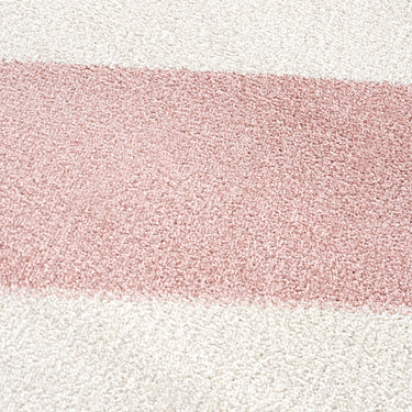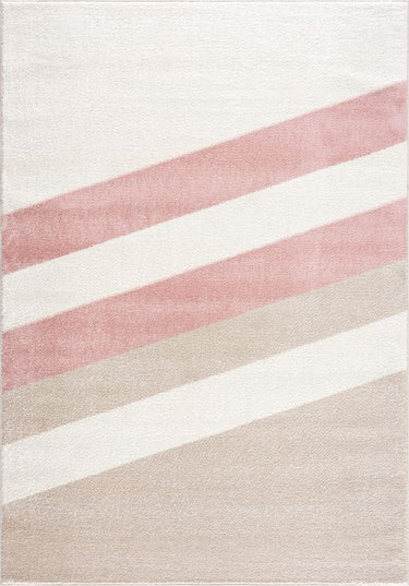 Ivory with beige and blush pink diagonal lines, rug stripes a classic pattern that pairs well with everything. Create a cozy and serene atmosphere with this minimalistic rug inspired by mid century decor.