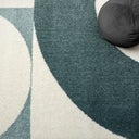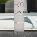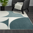 This area rug puts a modern spin on geometric patterns. Full circles and partial circles; straight lines and wavy lines; individual shapes and overlapping shapes – so much is happening, but it doesn’t feel at all chaotic. Additionally, the contrast between the dark and light blue on top of the soft cream add additional excitement while still blending well with whatever furniture surrounds it.