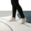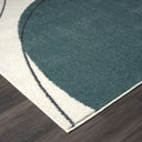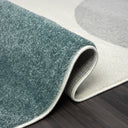This modern area rug may look uniquely hand drawn, but the detail that went into this pattern makes it extremely pleasing to the viewer. A large teal circle feels like the centerpiece of the design, and the two gray circles are the perfect accents. Three subtle lines add additional movement to the pattern while keeping it simple and easy to match with other designs.
