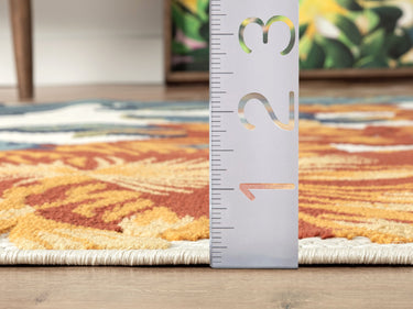 Evoke the beauty of a tropical paradise into any room of your home. This Hampton area rug is inspired by the palms and blooms of Hawaii. Like a relaxing vacation in paradise, this tropical print area rug has warm orange and red flowers paired with stylistic palm prints. Beautifully contemporary, this rug makes an undeniable statement in your existing interior design. With easy-care durability in mind, it's time to bring the energy of the tropics into your own space.