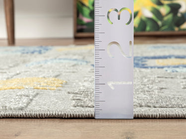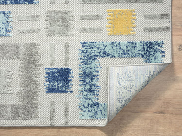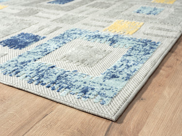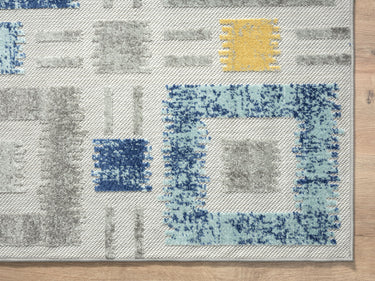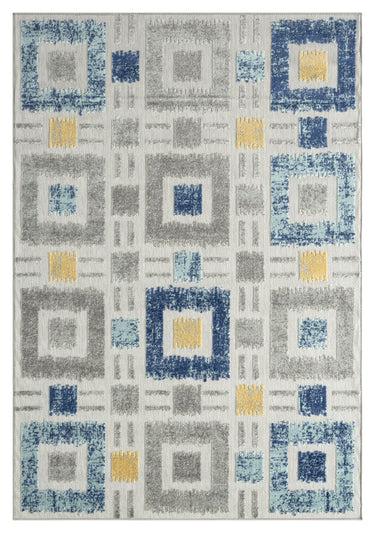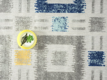 In the past century, color and shapes took center stage as the leading medium for storytelling. Found in the top art of the time, this simplicity is reflected in every aspect of contemporary design. This area rug utilizes square shapes and linear designs to create a feeling of ease and comfort. The shades of grey and blue offer a cooling effect, while the pops of yellow reveal an unexpected twist. Effortlessly modern and undeniably eye-catching, this durable area rug is a favorite for a reason.