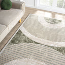 Transform your space with this stylish green and beige area rug featuring a timeless double arch pattern inspired by mid-century modern design. Its warm, earthy tones add a cozy ambiance, while the soft, durable fibers provide comfort underfoot. Designed with busy households in mind, this rug is pet and kid-friendly, resisting everyday wear and spills. The versatile pattern complements a variety of décor styles, making it a perfect addition to living rooms, bedrooms, or play areas.