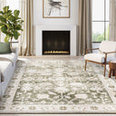 Add rustic charm to your home with this vintage farmhouse-inspired area rug in a stunning green ivy hue. Its soft, plush texture invites comfort while standing up to the demands of a busy household. Pet and kid-friendly, it’s perfect for living rooms, dining areas, or cozy nooks. The timeless design blends seamlessly with farmhouse, cottage, or classic interiors, bringing warmth and character to any space. Style meets practicality in this charming, durable rug.