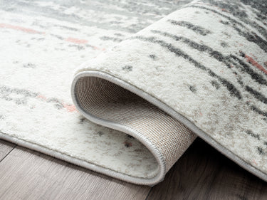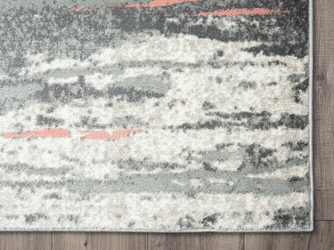 Define your home or office space with a modern piece of art, this rug. Crafted with a riot of colors such as stunning beiges, greys and pink details, this soft to the touch rug features fun vertical lines that look as if they've been hand painted on. If you look real closely, it is hard to tell which color is in the forefront thanks to the unique multi layered effects. Heavily distressed for an added allure, this beauty is sure to make a statement!