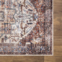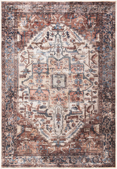 Add a magical touch to your space with a revamped classy style rug. The exotic and original medallion pattern teaming up with a terracotta color palette creates a stunning area rug. The central medallion is bordered by a beautiful light and dark blue intricately designed border. This area rug is the perfect addition for spaces with high traffic as it is easy to clean, stain resistant, and results in no shedding.