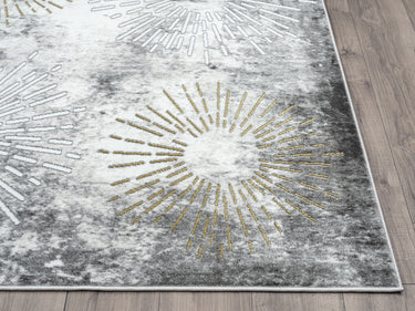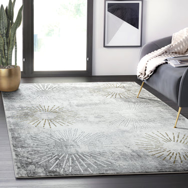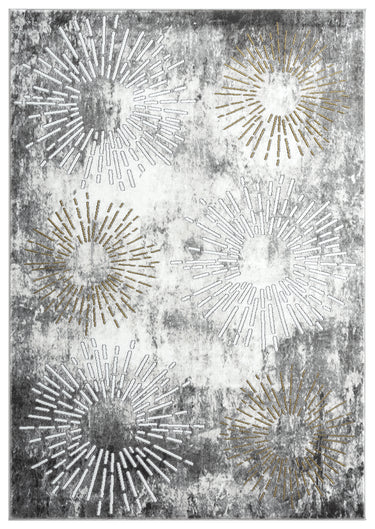 Inspired by the bold, colorful style of modern and contemporary art, this Luna area rug is the perfect blend of the old and the new. The grey background is distressed around the edges, giving it the appearance of depth and texture. To add additional dimension, there are bursts of grey and gold color throughout the rug, giving the appearance of bright fireworks on a dim night. Despite the chic, luxurious experience, this rug is crafted with the best easy-care fabric to ensure it’s long lasting and avoids shedding. This is the bold statement your home has been waiting for.