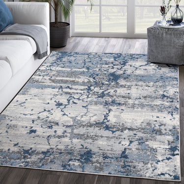 Add a subtle design to your monochromatic grey space with this abstract area rug. Inspired from the cracks of a concrete wall with beautiful blue colored veins forming a unique abstract pattern on the rug. This area rug is very versatile with the various styles it could blend in. It can adorn any room from a living room to a home office.