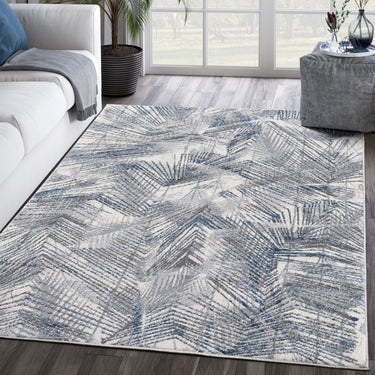A modern take on a design inspired by palm tree leaves creating a subdued coastal and tropical design rug. The washed out effect on the design allows for the design to be incorporated into any space adding a coastal element.