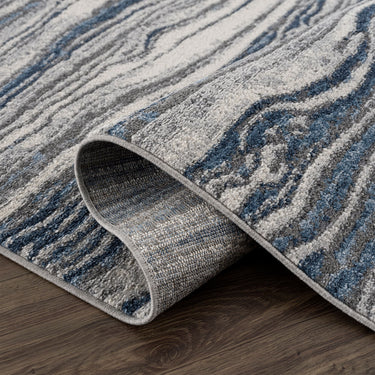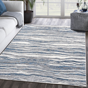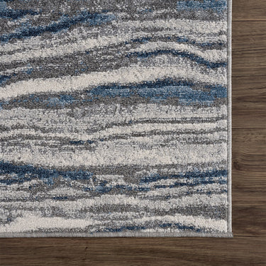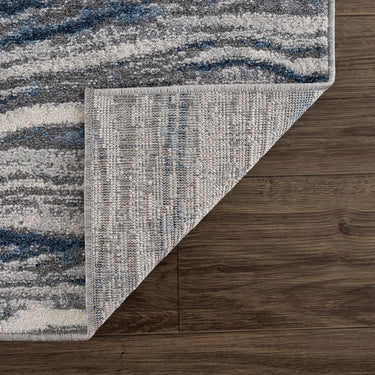 A timeless design in calming hues of blue and grey is sure to bring peace and serenity to any space. Inspired by the ripples of the blue midnight ocean, this area rug is designed to match multiple interior decor styles. Decorate a baby room or a home office with this rug