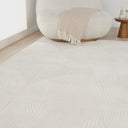 This cream area rug, elegantly features a tone-on-tone semi-circle pattern for added depth and texture. Crafted with both style and comfort in mind, it enhances any space with its subtle yet distinctive design. Perfect for adding a touch of elegance and warmth to your living room, bedroom, or office.
