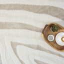 Flowing with organic movement, this cream and beige area rug features a mesmerizing abstract wave pattern that adds depth and artistic appeal to any space. Its soft, neutral tones create a calming and sophisticated foundation, making it a perfect fit for modern, bohemian, or transitional interiors. Crafted with a high-low texture, it enhances both visual and tactile interest, offering a cozy yet stylish touch for living rooms, bedrooms, or open-concept spaces. A statement piece that blends elegance with natural inspiration.