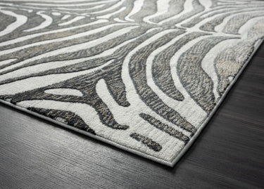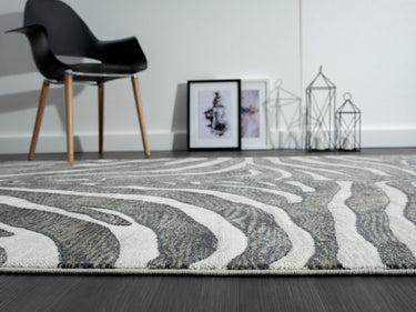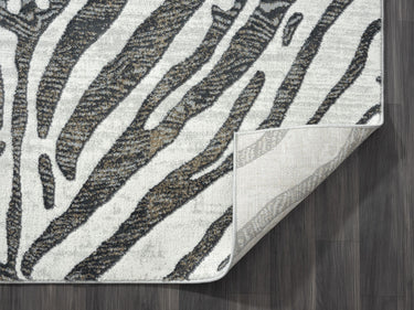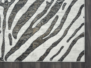 Evoke the exotic, luxurious excitement of an African safari with this contemporary area rug. Sophisticated and modern, this rug is just as functional as it is beautiful. The grey and brown color scheme gives this animal print zebra pattern a touch of sleek elegance, perfect for matching any interior design style. Bring the beauty of a safari adventure into your space. Perfect for a bedroom, office, or living room, this easy-care design will last for decades to come. Capture the excitement of the wild with the grace and luxury of modern interior design with this one-of-a-kind area rug.
