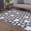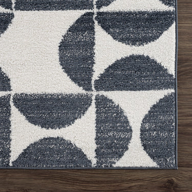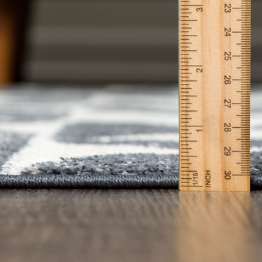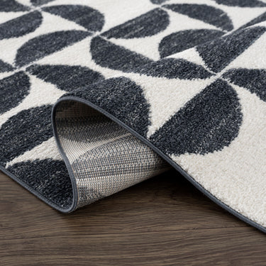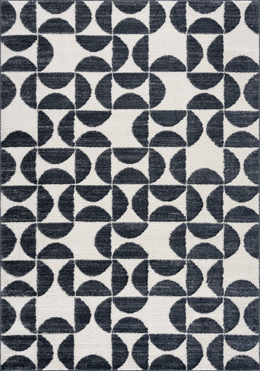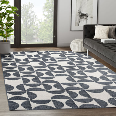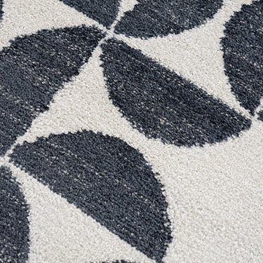 This high-contrast patterned rug in charcoal and ivory is a modern take on Moroccan encaustic tiles. Create a mid-century stylish space with this bold rug underfoot and neutral decor with black and white accents.