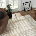 This modern area rug adds just the right amount of texture to a room. The asymmetrical shapes seem to fit perfectly together over a solid background, making this rug feel like it’s truly one of a kind. The neutral colors are designed to blend with your existing theme, and the abstract design will perfectly complement your home or office space.