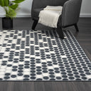 Inspired by the honeycomb pattern created by bees, this geometric area rug is the perfect way to add interest to your space. The series of perfectly aligned octagons across the rug alternate between black and white, creating a fading effect between the two colors. But with black octagons speckled throughout the white space, the design stays exciting while still looking clean.