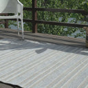 A classic striped pattern in soft blue and neutral tones brings a fresh, coastal-inspired look to any outdoor space. Designed for durability, this rug is crafted from weather-resistant materials that withstand sun exposure, moisture, and everyday wear. Its versatile design adds a touch of timeless elegance to patios, decks, and balconies, making it the perfect foundation for outdoor lounging and entertaining.