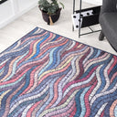 Inspired by traditional hand-woven mats, this vintage area rug features an intricate design to add a dash of color and excitement to any kind of room. A collection of short, wavy lines in a rainbow of colors layer on top of one another to create movement, lighting up your space and adding the finishing touches to your home.