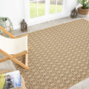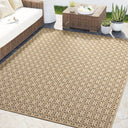 Patio Checkered Stripes Indoor/Outdoor Flatweave Beige Rug