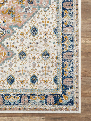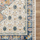 This heirloom-inspired traditional area rug is like taking a step back in time. With the colorful motifs found in Persian and Oriental designers, the patterns in the Porto traditional ivory and orange area rug are truly timeless. Featuring a bold, royal blue border and orange medallions, this is a statement piece that will fit any space in your home. With a diamond medallion pattern on the beige background, the colors are subtle enough to suit any existing interior decor style, whether you plan to mix the old with the new or stay traditional.