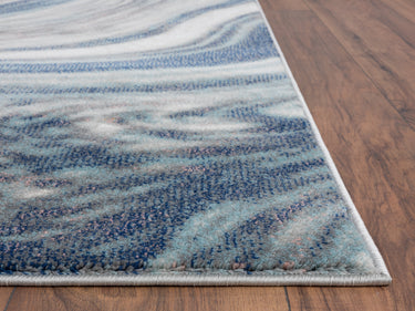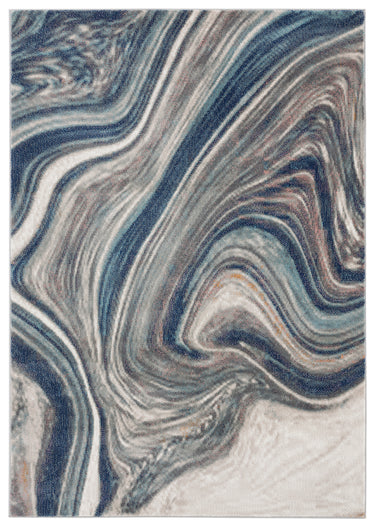 Make a statement with this contemporary rug that gives the impression of the natural flow of water and the artistry of nature with its blue and gray marbled effect design on an ivory background. Modern in its choice of design and color this rug is the perfect addition to any chic home or office that will look great now and in the future too. Made from polypropylene this rug is hard wearing, easy to clean and stain resistant. It won’t fray or shed fibres either making this the perfect easy to care for rug to add to your home.