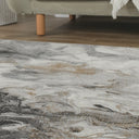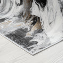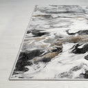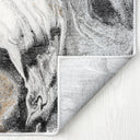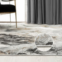This modern, contemporary masterpiece features a captivating blend of black and grey, with a subtle hint of bronze, this rug exudes sophistication and luxury. Its design, reminiscent of brushed metal, adds a touch of contemporary opulence to your decor. With a low, soft pile, it offers a plush, comfortable surface while being easy to maintain and clean, making it perfect for homes with active kids and pets.