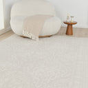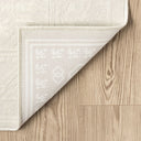 Evoke the charm of old-world Europe with our cream-colored area rug, featuring a vintage design inspired by European café napkins. Its tone-on-tone pattern weaves subtle warmth into any space, blending seamlessly with your existing décor. This rug captures the essence of artisanal craftsmanship, creating an inviting atmosphere with its sophisticated appearance.