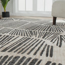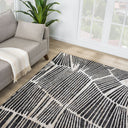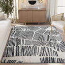 Transform your home with this contemporary area rug, featuring bold black linear patterns reminiscent of abstract brushstrokes or natural leaf textures on a soft beige-cream background. The striking design adds visual interest, while its neutral tones ensure versatility with any decor. Perfect for adding texture and modern charm, this rug brings a serene yet sophisticated vibe to your space. Durable and easy to maintain, it’s ideal for both high-traffic areas and cozy retreats.