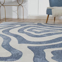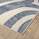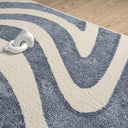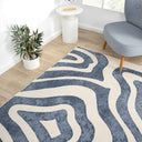 Enhance your space with this contemporary blue and cream area rug, featuring a flowing wavy pattern that adds movement and style to any room. The versatile design effortlessly complements modern and transitional decor, making it a perfect addition to living rooms, bedrooms, or dining areas. Crafted from durable, pet- and kid-friendly materials, this rug is designed to withstand daily wear while maintaining its vibrant look. The soft texture provides comfort underfoot, while the stain-resistant fibers ensure easy maintenance. Both practical and stylish, this rug brings a fresh, dynamic touch to busy households without sacrificing elegance.