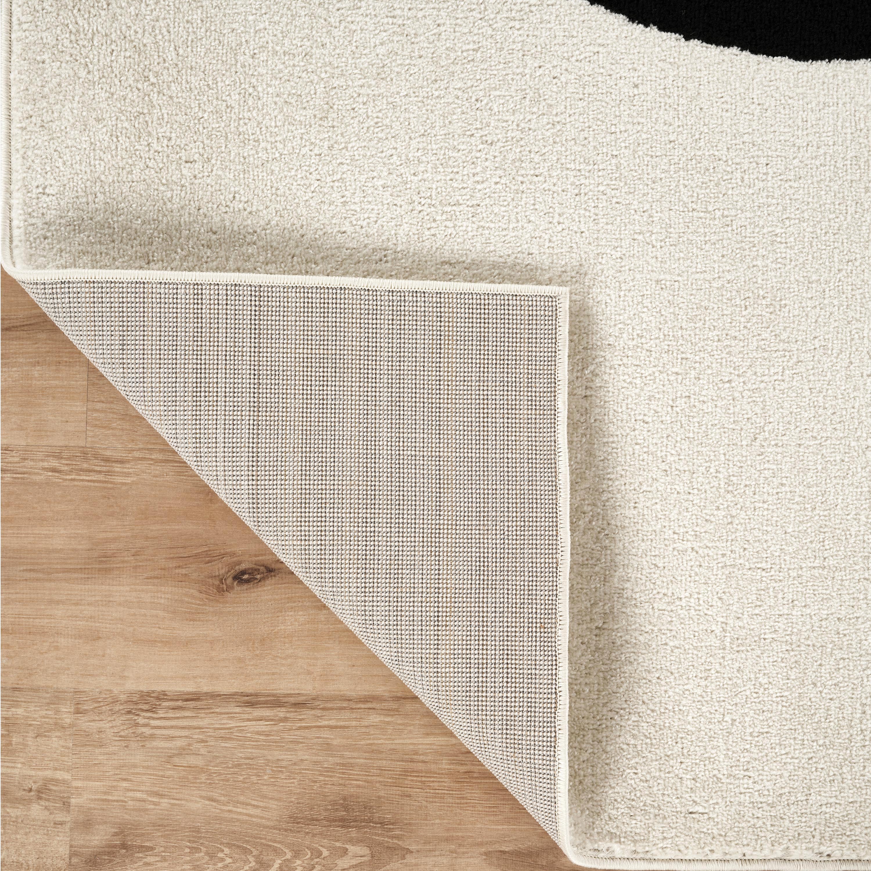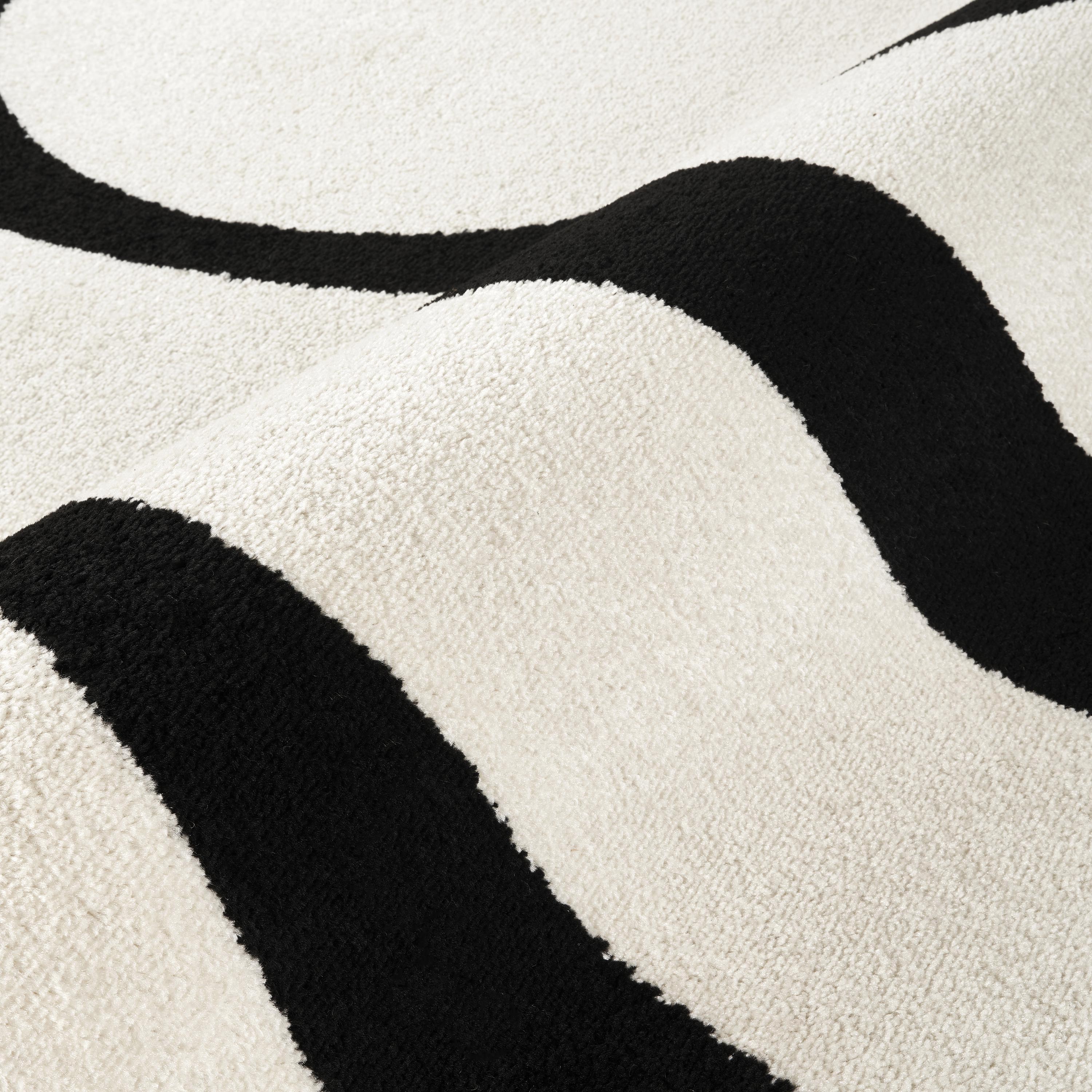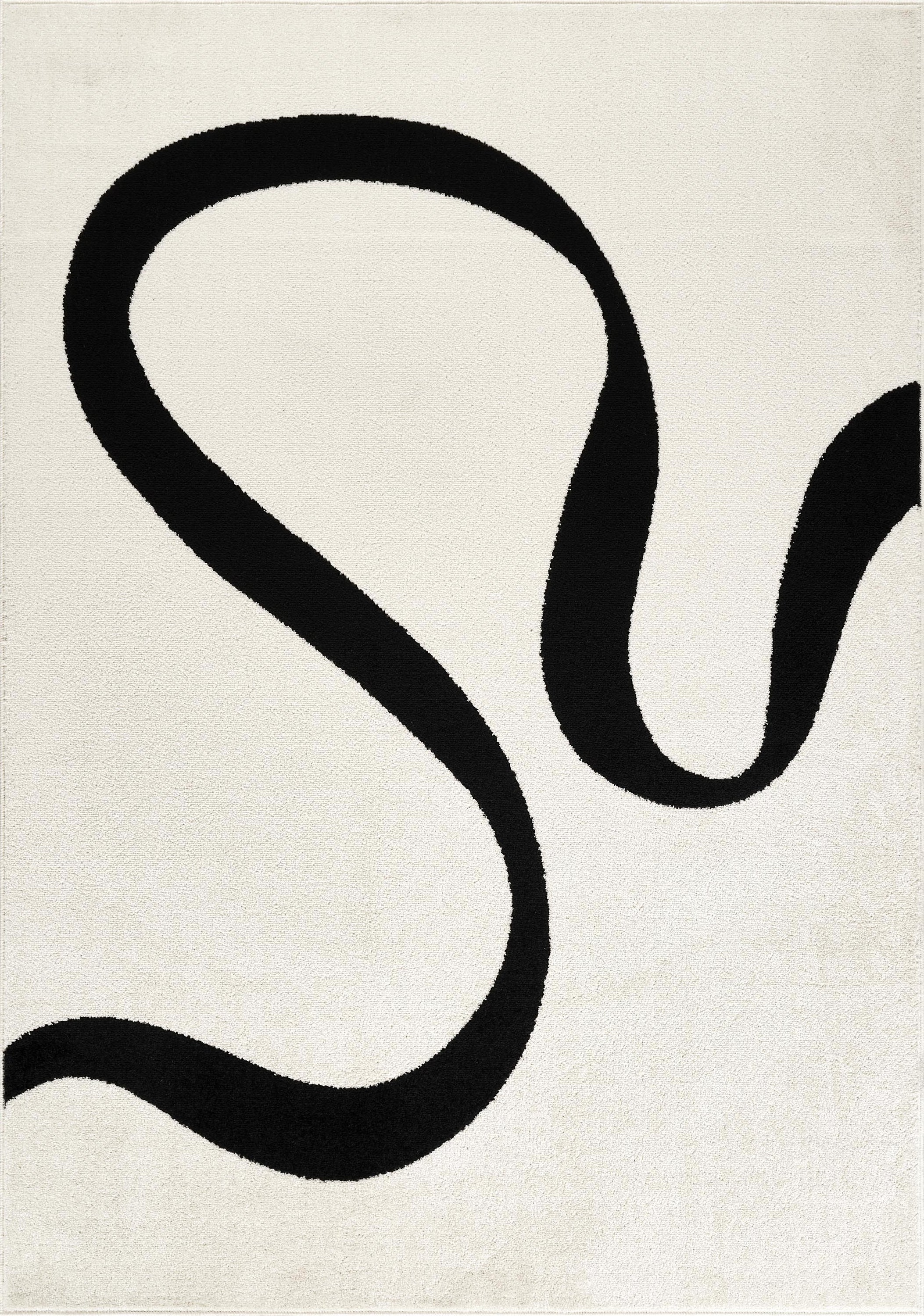 This abstract rug is the perfect way to bring a subtle statement to your space. With line work reminiscent of calligraphy, this rug feels like a piece of art come to life. The curved line elicits feelings of gracefulness, and it gives the viewer a sense of moving forward. Elevate your home or office space with this modern take on functional decor.