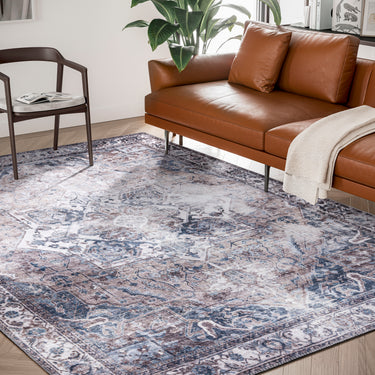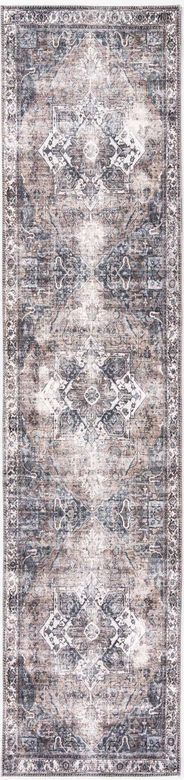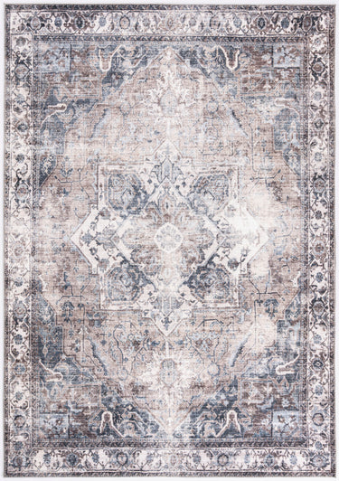 Paloma Brown Grey Medallion Vintage Washable Rug