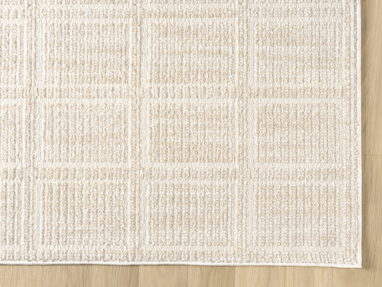 Refined and versatile, this area rug features a subtle grid pattern in warm beige and ivory tones. The clean, textural design adds dimension without overwhelming the space, making it a sophisticated foundation for modern, transitional, or minimalist interiors. Perfect for living rooms, bedrooms, or offices, it offers a timeless look with contemporary appeal.