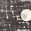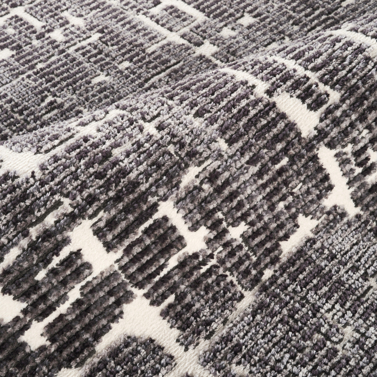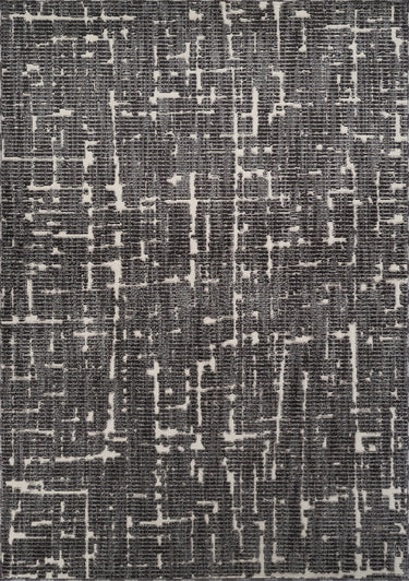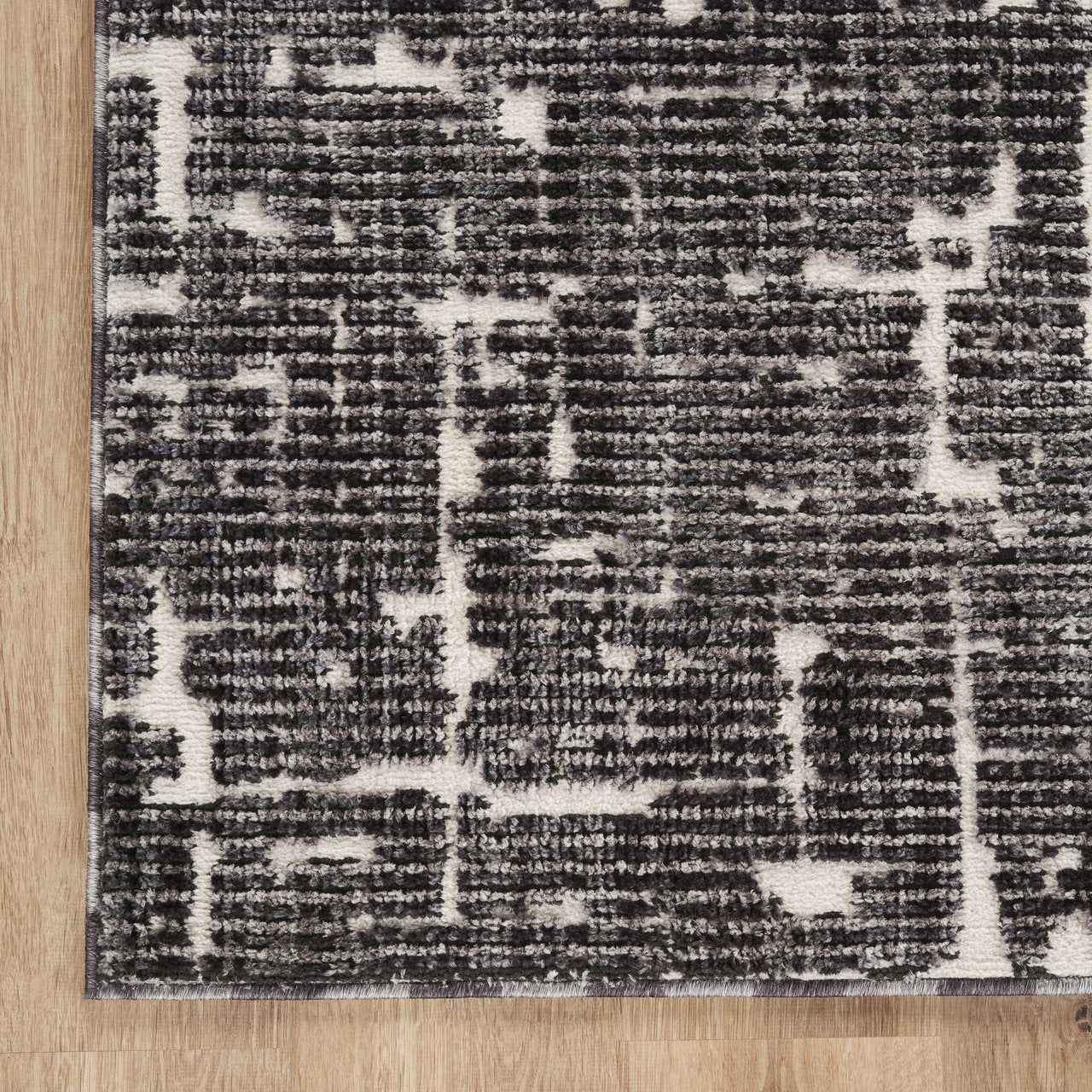 Striking and contemporary, this area rug features a bold abstract pattern in black and ivory. The layered, textured design evokes an urban sophistication, making it an ideal statement piece for modern living rooms, home offices, or open-concept spaces. Crafted for both style and durability, it brings refined edge and visual depth to any interior.