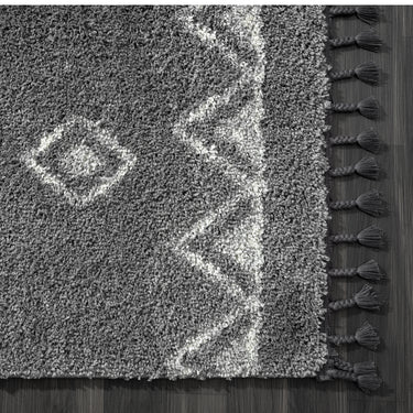 The Willow Contemporary Tribal Shag Area Rug is a modern work of art inspired by classic tribal designs. The grey and ivory color scheme is an on-trend refresh on a classic design, offering a hint of old to balance the new. The tribal-inspired prints resemble the shapes and styles of the American Southwest. Additionally, the shag material adds a touch of comfort and warmth to an otherwise cool, neutral design. Perfect for any space in your home, take your interior design to the next level with this area rug.