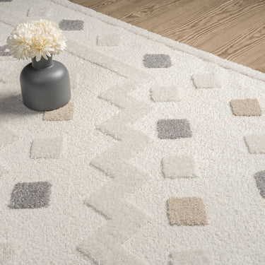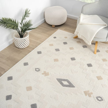 Introduce a touch of global-inspired charm to your home with this stunning rug in cream, beige, and grey, featuring a bold tribal pattern. Perfect for adding texture and character to both modern and traditional spaces, the intricate design brings a sense of warmth and cultural flair to any room. Crafted from durable, pet- and kid-friendly materials, this rug is ideal for high-traffic areas while offering easy maintenance. The neutral color palette allows it to blend seamlessly with a variety of decor styles, making it a versatile addition to living rooms, bedrooms, or dining spaces. Style meets functionality effortlessly!