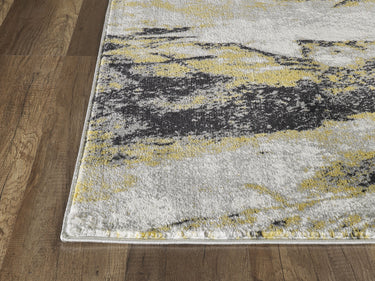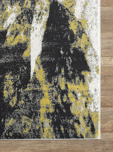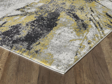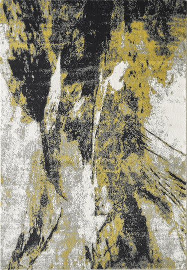 This Laguna modern abstract gold and grey area rug is a harmony of warm hues, drawing on the artistic influences from the past century. The contemporary style is sleek and alluring, perfect for complementing your clean-lined home furnishings. The abstract color-splotted design evokes the style of the 1960s with a chic update on the classic interior style. Let the warm gold and grey hues evoke rays of west coast sunshine in any room in your home. Bring this easy-care area rug into your interior decor for a much-needed pop of color, style, and modern charm.
