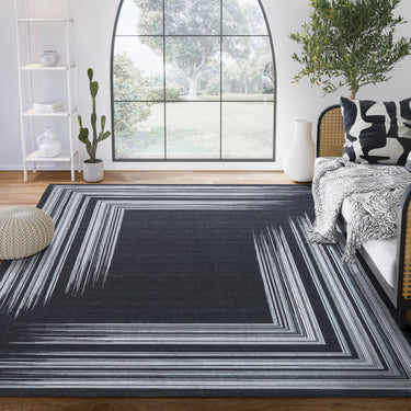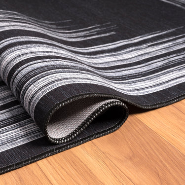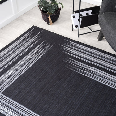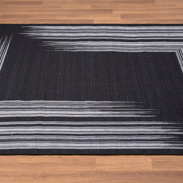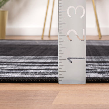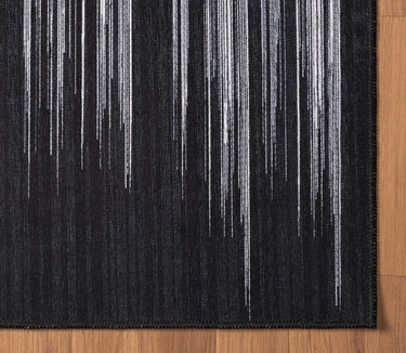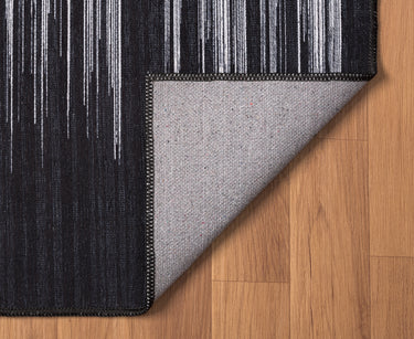 Lines in a variety of sizes and lengths come together in this vintage area rug to add a sense of movement to a room. Straight lines represent uniformity, but the strong corners and faded ends to the lines add interest and texture. Additionally, the creamy white lines beautifully compliment the dark gray background, making it the perfect addition to living and office spaces alike.
