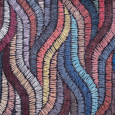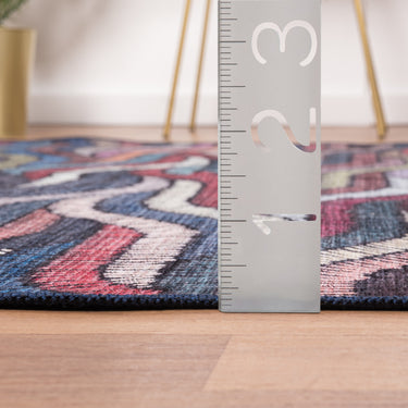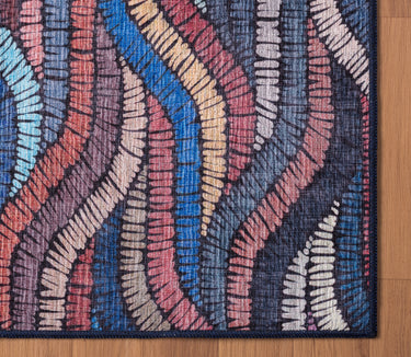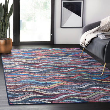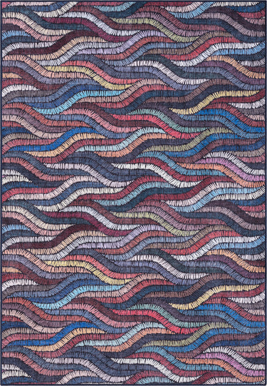 Inspired by traditional hand-woven mats, this vintage area rug features an intricate design to add a dash of color and excitement to any kind of room. A collection of short, wavy lines in a rainbow of colors layer on top of one another to create movement, lighting up your space and adding the finishing touches to your home.
