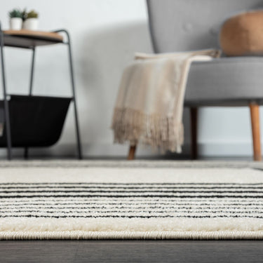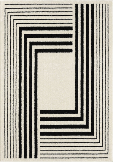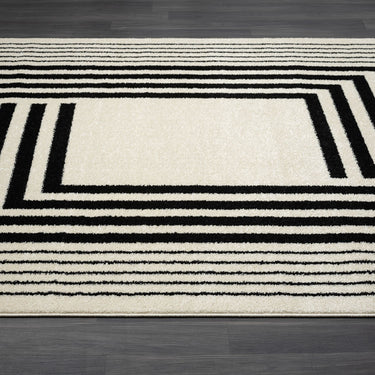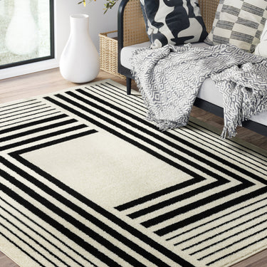 This geometric area rug uses the power of optical illusions to make a space feel larger than it is. The lines contrast in thickness and form a rectangle, resulting in a 3D effect that creates a sense of depth in the image. Although complex, this pattern is still neutral enough to fit perfectly with your current design theme.
